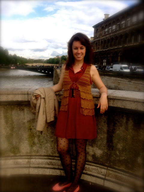 En flânant le nez au vent, j’adore parcourir les quais de Seine entre Rivoli et l’île Saint Louis. Il y a toujours un petit vent sur les ponts , idéal pour faire sa pin-up quelques minutes avec le vent dans les cheveux. Je porte une robe à voiles Jennyfer avec des boutons DIY en forme de piques.