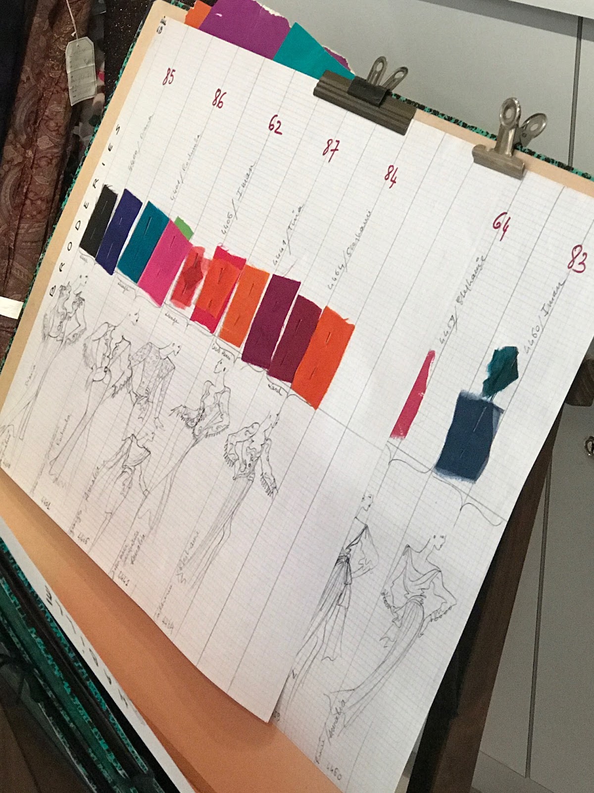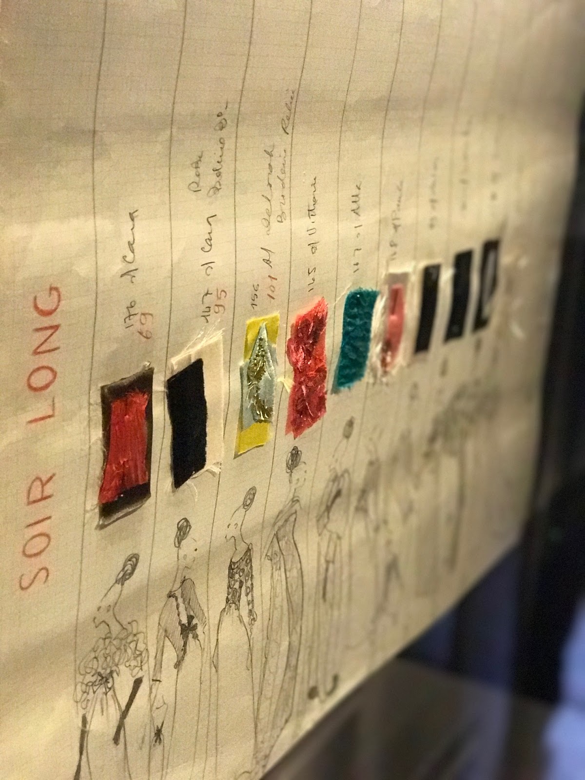 J’y découvre les croquis, les panneaux de sélections de modèles, son écriture, ses robes haute-couture, ses croquis et esquisses.