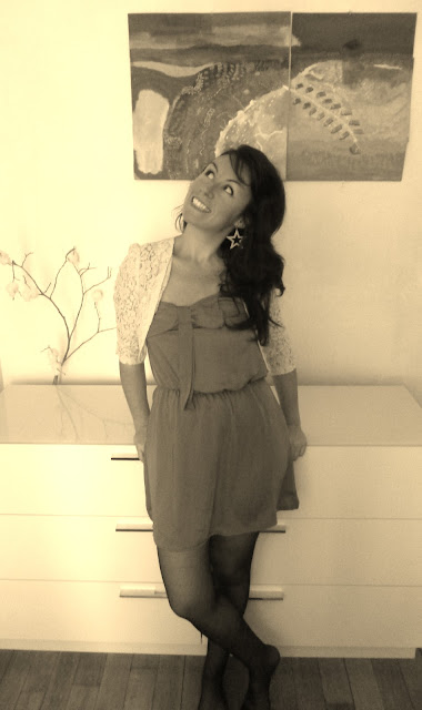 ravissante ce look =) la robe a une super couleur et le petit gilet est très joli 🙂 !
