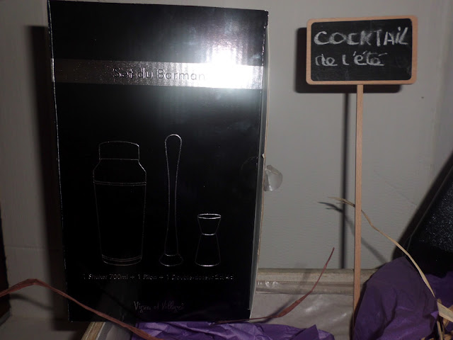 Ca m’a fait trop plaisir , je n’ai pas démérité.J’ai gagné le super kit du parfait barman Paradis du Fruit: un blender professionnel, un shaker , doseur pour alcool , un pilon , un tablier et un plateau-caissette ,  un bob.