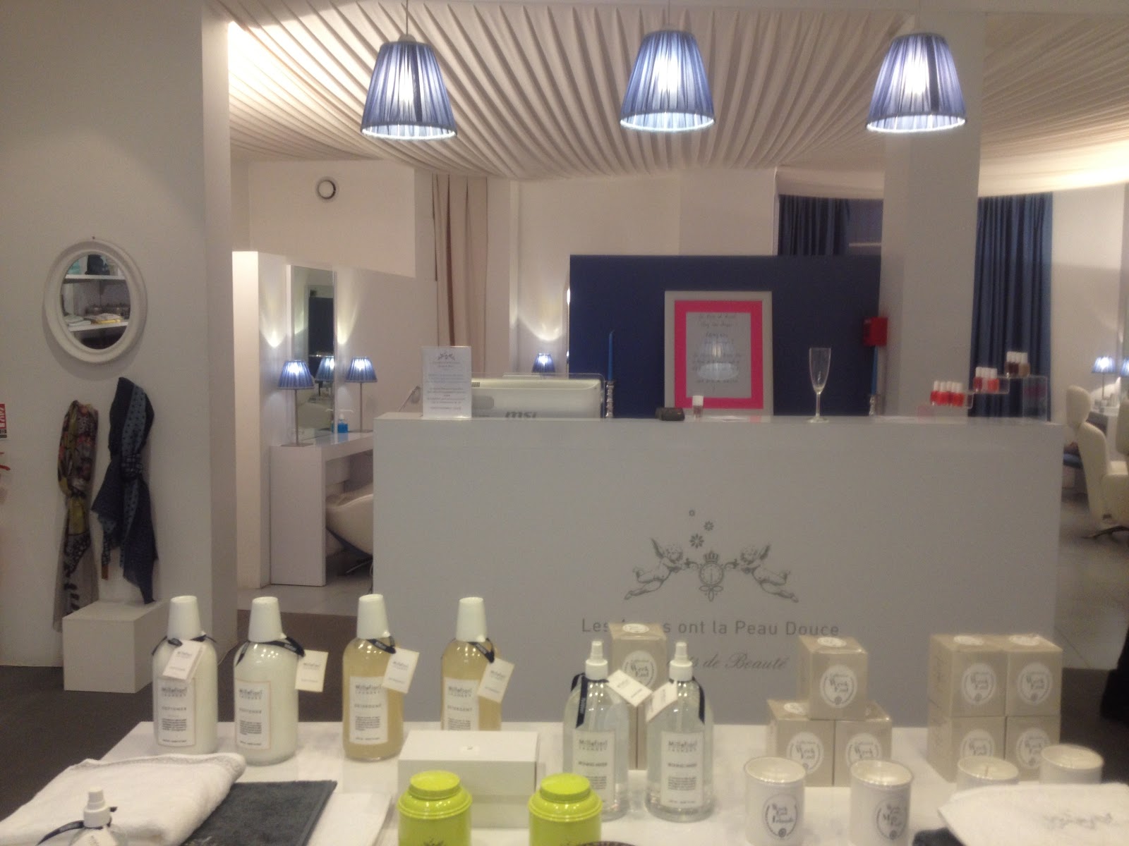 Après une journée de boulot, je me suis accordée un petit moment de détente dans un endroit qui respire bon le paradis.Je pousse la porte du lounge beauté 254 rue du Faubourg Saint-Honoré et j’entre dans un salon aux teintes blanches et bleues nuit.Je m’y sens déjà bien.