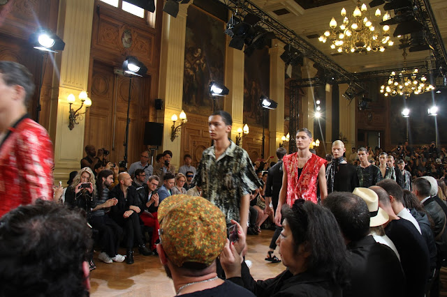 Les tenues blanches ou noires,des mannequins faisaient ressortir les imprimés de coulure au nuance grise, rouge et verte.
