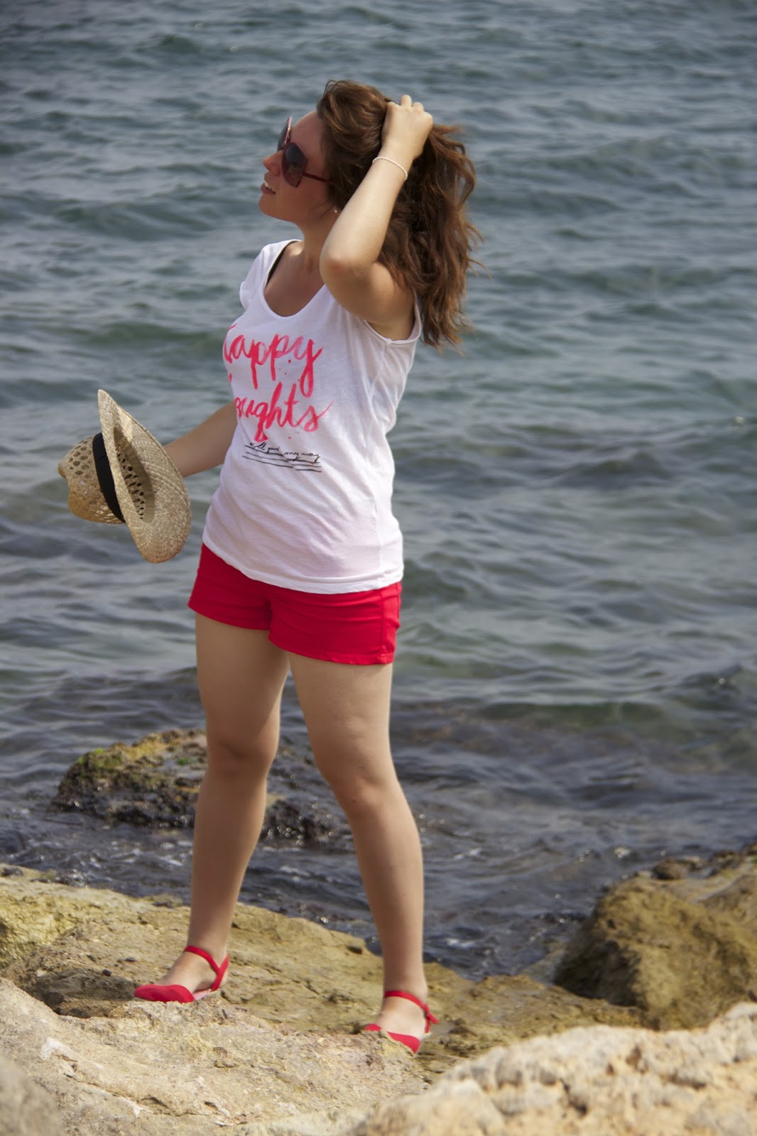 Un tee-shirt blanc Stradivarius , un short rouge H&M et des espadrilles rouges , voilà l adéquation parfaite pour un summer look que j’adore.