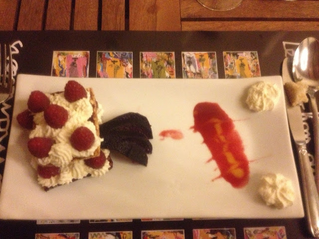 Pour finir , car il nous restait un petit peu de place, nous nous sommes laissés tenter par le mille feuilles à la framboise .