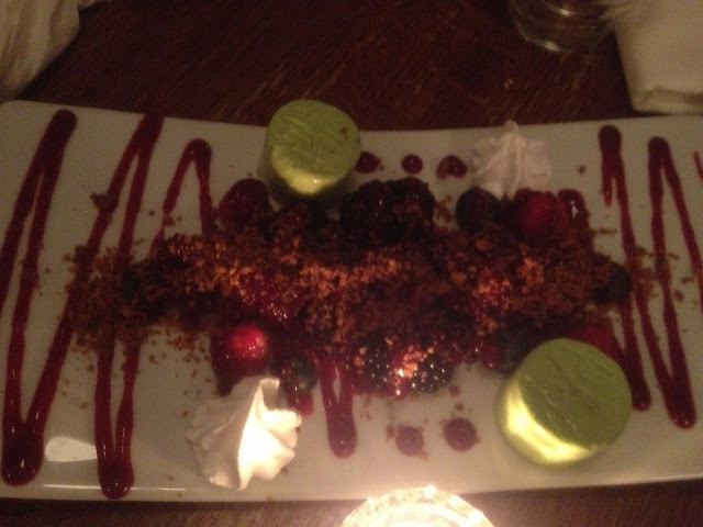 Côté dessert, j’ai succombé à une assiette de fruits rouges nappés parsemée de pain perdu et accompagnée de deux cubes de glace pistache.Vous trouverez également des flans frais ou des cafés gourmands …