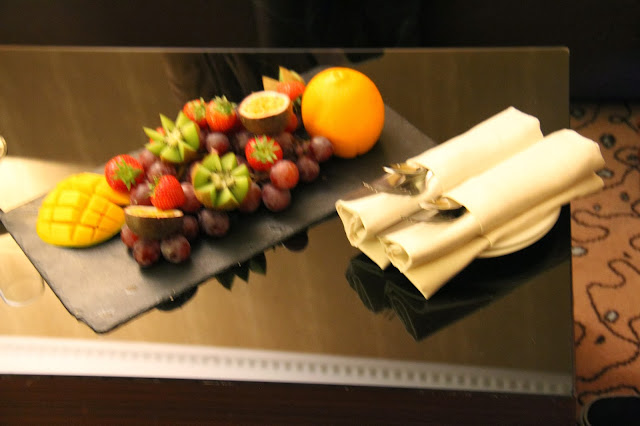 Accueillie par un personnel aux petits soins, je m’installe au Purple Bar , pour déguster une coupe de champagne. Le bar est chic, cosy et feutré. J’adore cette ambiance.