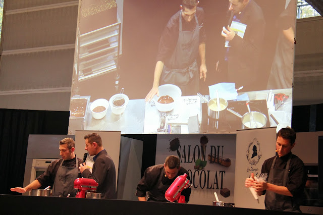 A l’occasion du Salon du Chocolat , l’équipe  » Les Marquis de Ladurée  »  présentée par Christophe Devé proposait une Choco Demo qui nous dévoilait quelques secrets de fabrication de leur douceurs et des conseils pratiques à reproduire chez soi.