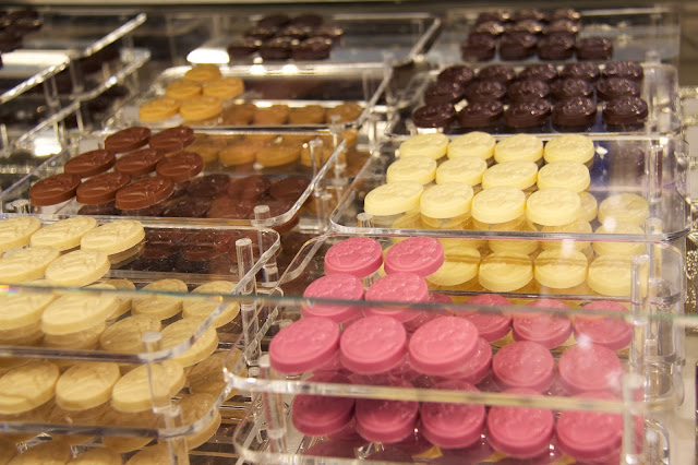 A l’intérieur, on découvre 4 petits chocolats macarons . En partant de la gauche vers la droite: