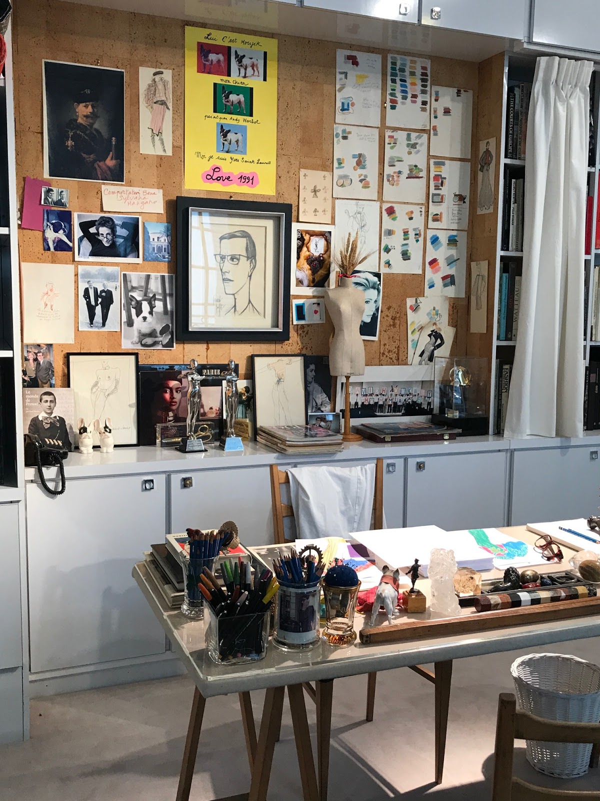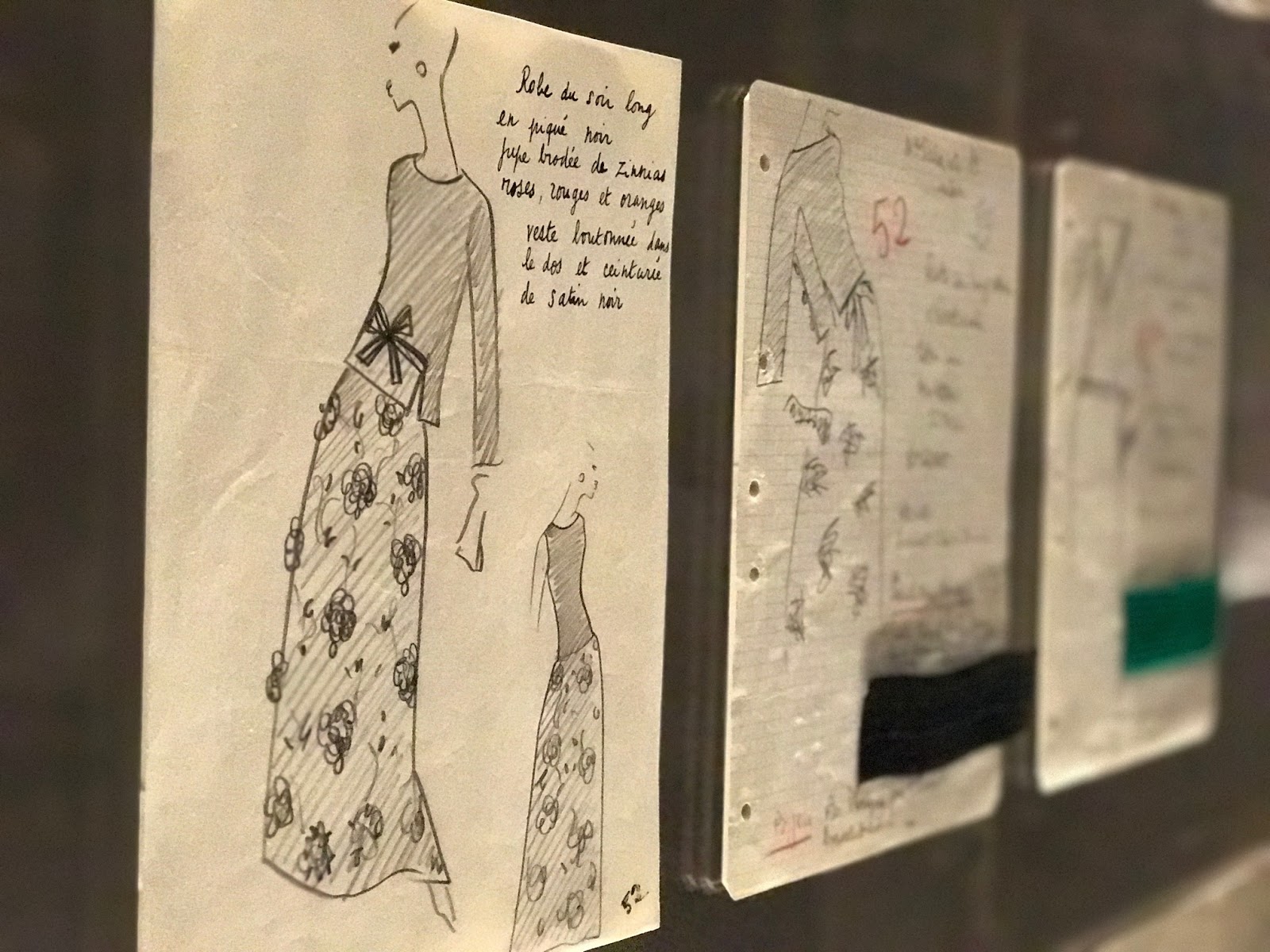 J’y découvre les croquis, les panneaux de sélections de modèles, son écriture, ses robes haute-couture, ses croquis et esquisses.