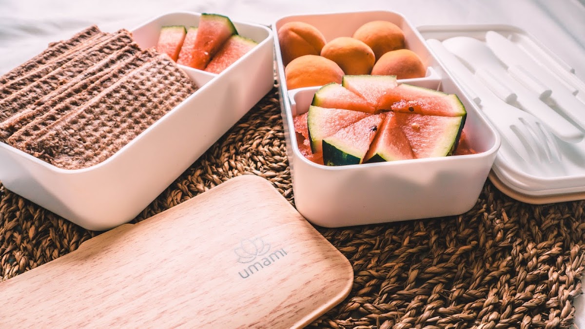 Bien évidemment, je n’emporte pas ma pastèque sous le bras en déplacement. Du coup, je dispose des morceaux dans mon nouvel outil bien pratique : mon bento.