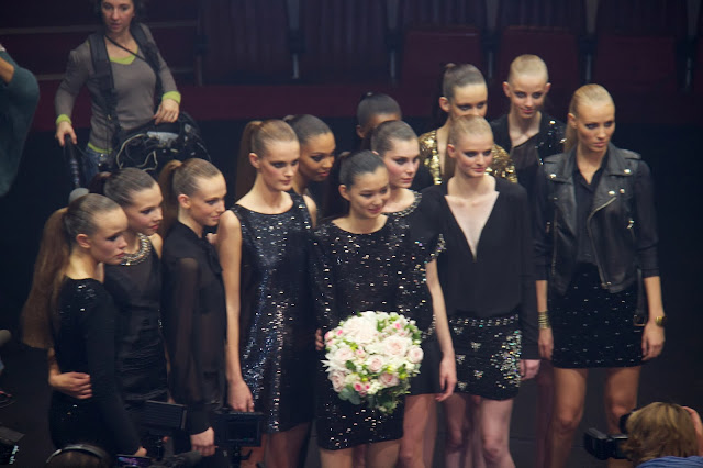 Les filles ont défilé dans différentes tenues : en style casual , en body noir sexy , en glamour or et blanc puis en noir chic pailleté.