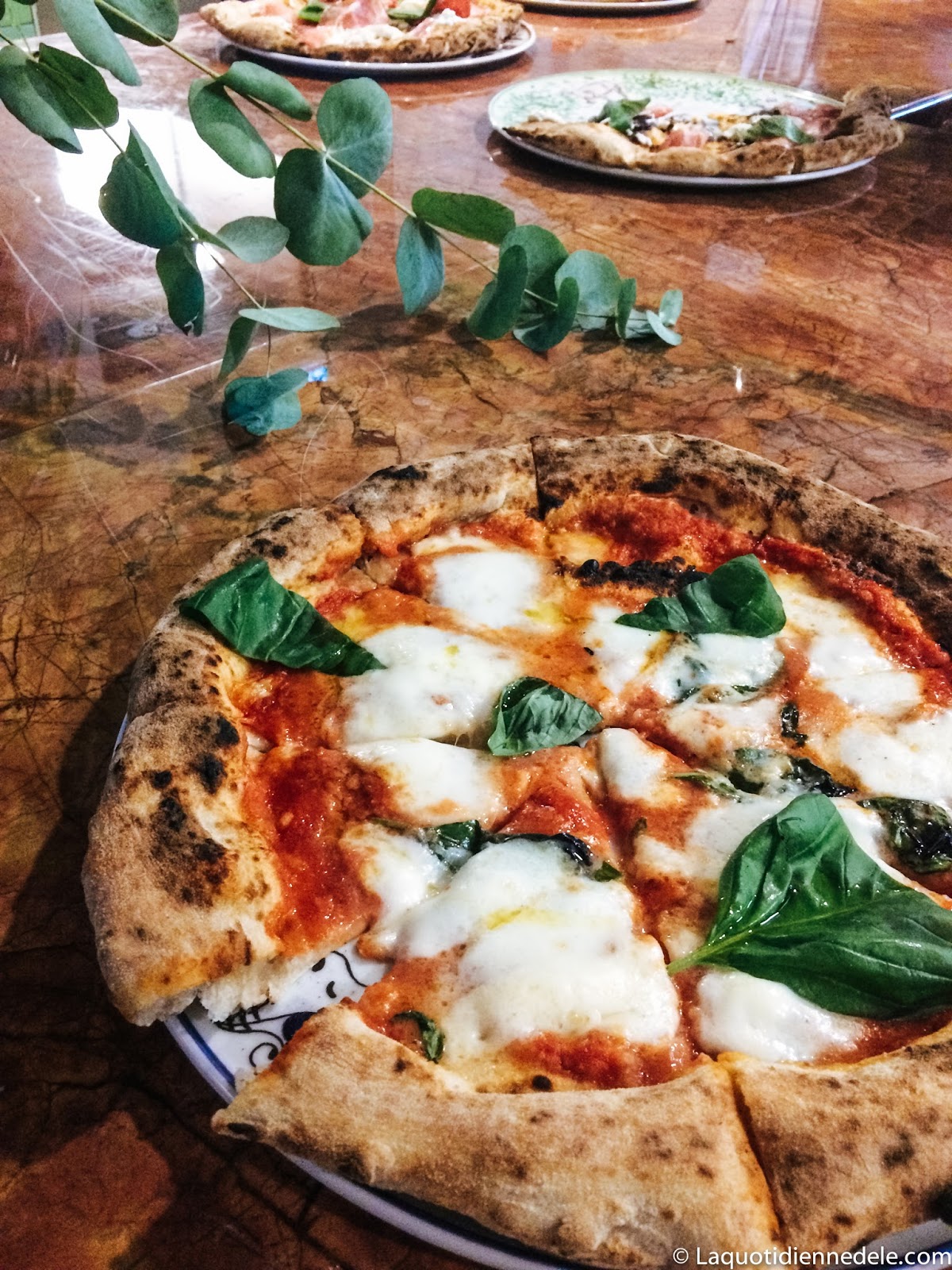 En matière de pizza, je suis très sélective. Je voue un culte culinaire pour la 4 fromages. Alors, lorsqu’arrive sous mes yeux, celle du Pink Mamma, je sens cette odeur de fromage qui m’enivre. La première bouchée est décisive. La pâte est légèrement croustillante et moelleuse. Les saveurs de fromage et de tomate se marient à merveille en bouche. Ses quelques feuilles de basilic donnent une touche finale à ce plaisir culinaire.
