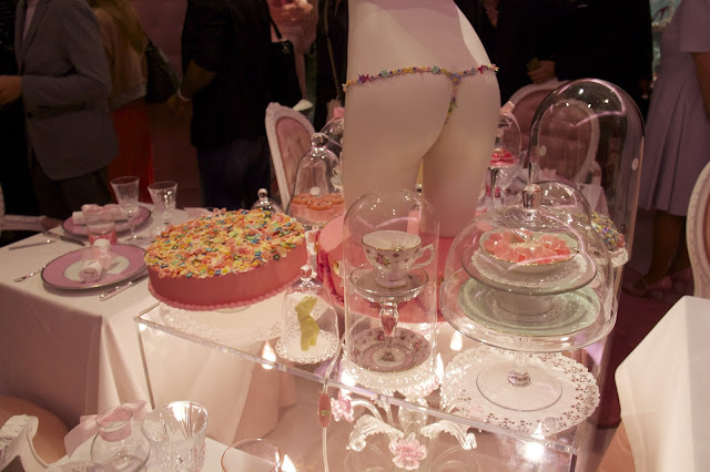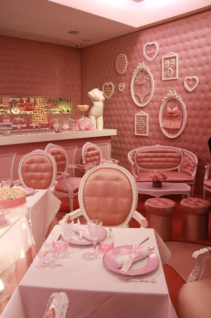Après quelques pas à l’intérieur , je découvre un magnifique écrin rose présentant les différentes lingeries et gourmandises de sa collection Gâteau-Bonbon .